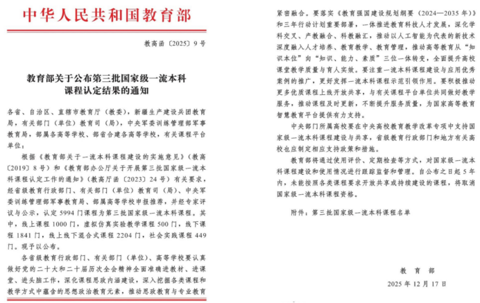 近日,教育部发布了《教育部关于公布第三批国家级一流本科课程认定结果的通知》(教高函〔2025〕9号),酷爱成人网