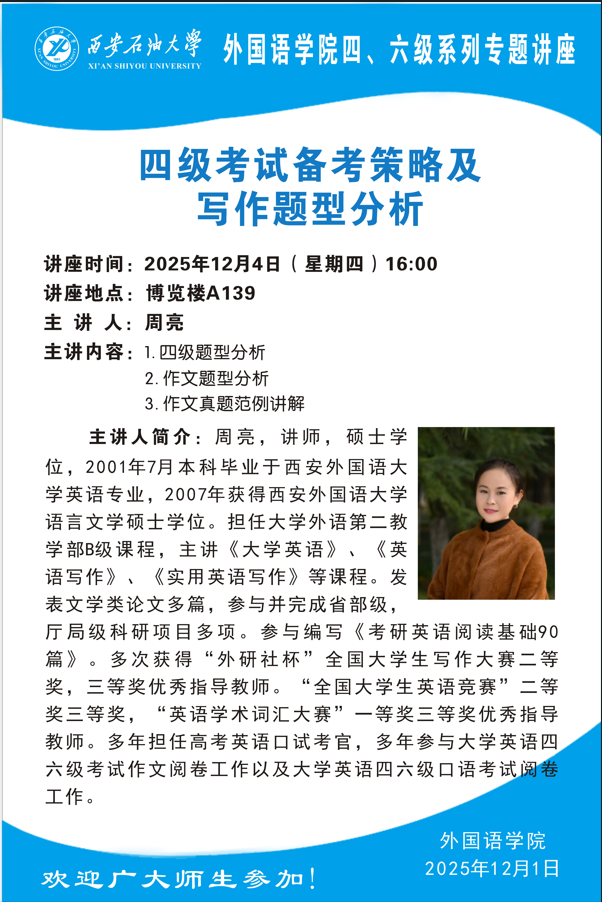 四、六级系列专题讲座 | 四级考试备考策略及写作题型分析